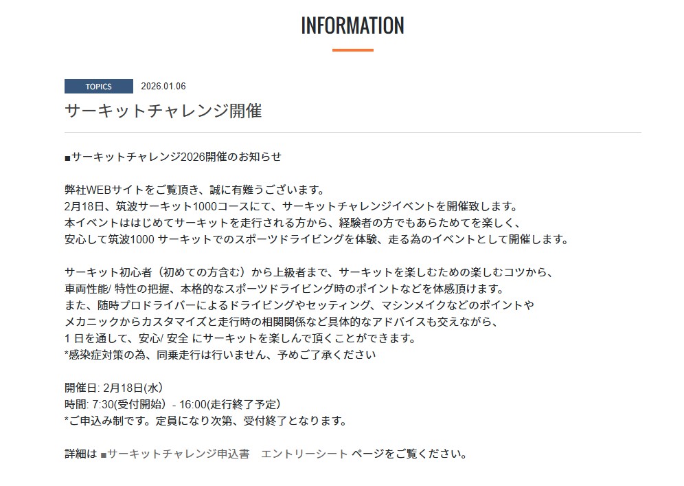■サーキットチャレンジ 案内/申込書 .pdf 参加ご希望の方は本書をプリントアウト、所定の箇所に記入・署名捺印の上、当社までお送り下さい。